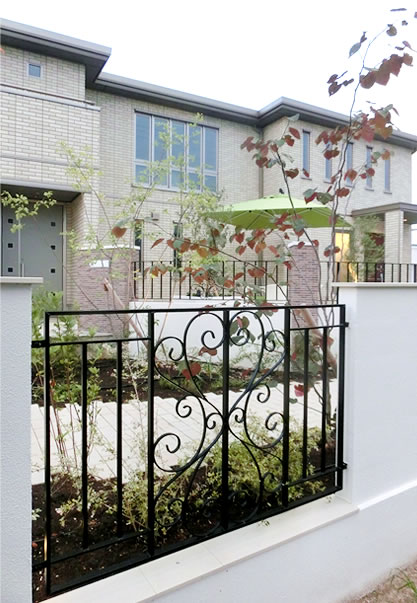 シンプルなアイアンフェンスは、開放感のなかにも落ち着きのある雰囲気を出してくれます。