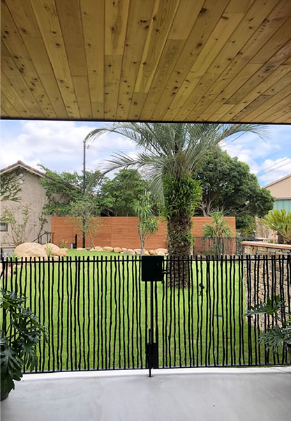 開放感のあるお庭に、シンボルツリーとして『ココスヤシ』をメインに、南国の雰囲気を味わっていただける植栽をいたしました。